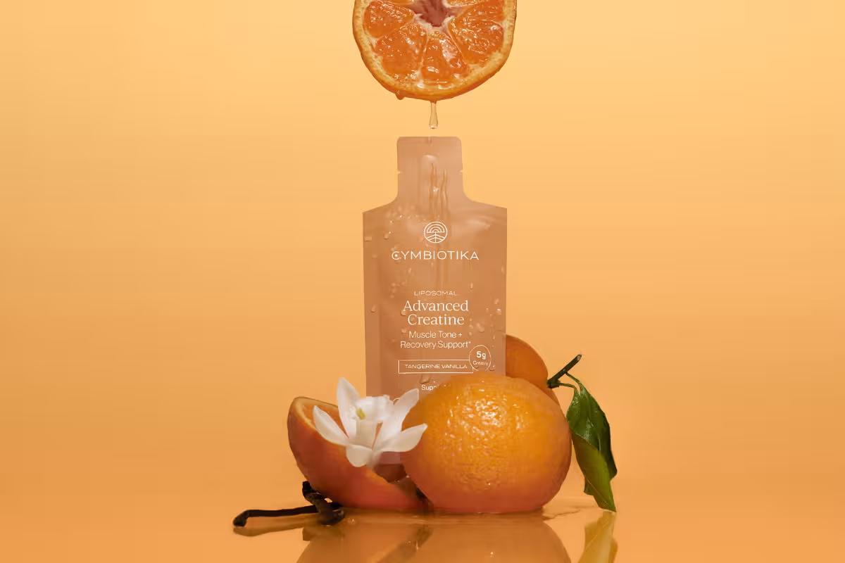 Cymbiotika’s solution: a liposomal delivery system using clinically studied CreaBev® creatine monohydrate, packaged in on-the-go liquid sachets.