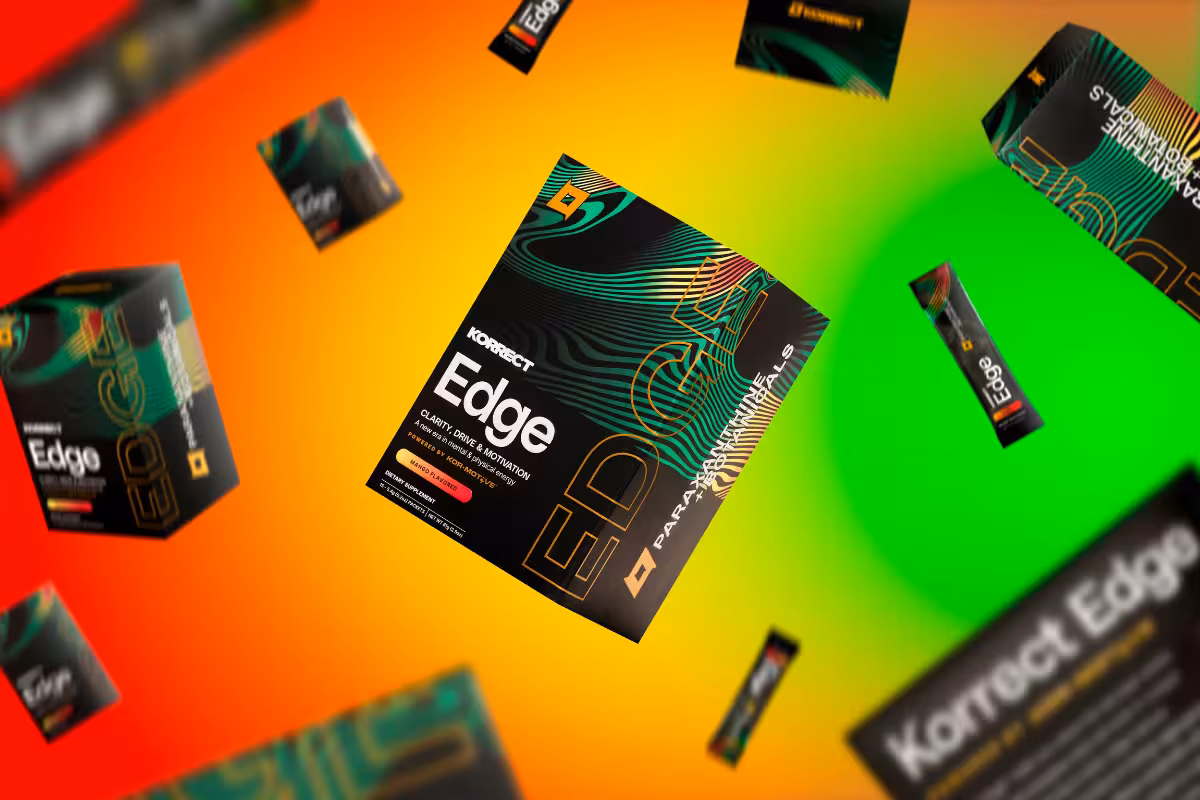 Instead of chasing jittery stimulation, Edge targets the systems that actually drive performance — dopamine pathways responsible for motivation, task initiation, and sustained mental drive. The result is what Korrect calls fluid mental energy: the kind that helps you start hard things — and finish them.